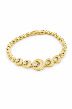 Ατσάλινο επιχρυσωμένο βραχιόλι με κρίκους και ζιργκόν, κομψό και ανθεκτικό για κάθε εμφάνιση.
