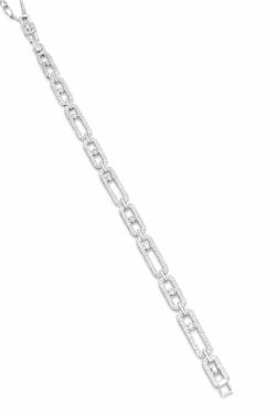 Κομψό γυναικείο βραχιόλι από ανοξείδωτο ατσάλι σε ασημί απόχρωση, με ορθογώνιους κρίκους διακοσμημένους με λαμπερά ζιργκόν. Elegant επιλογή για κάθε περίσταση.