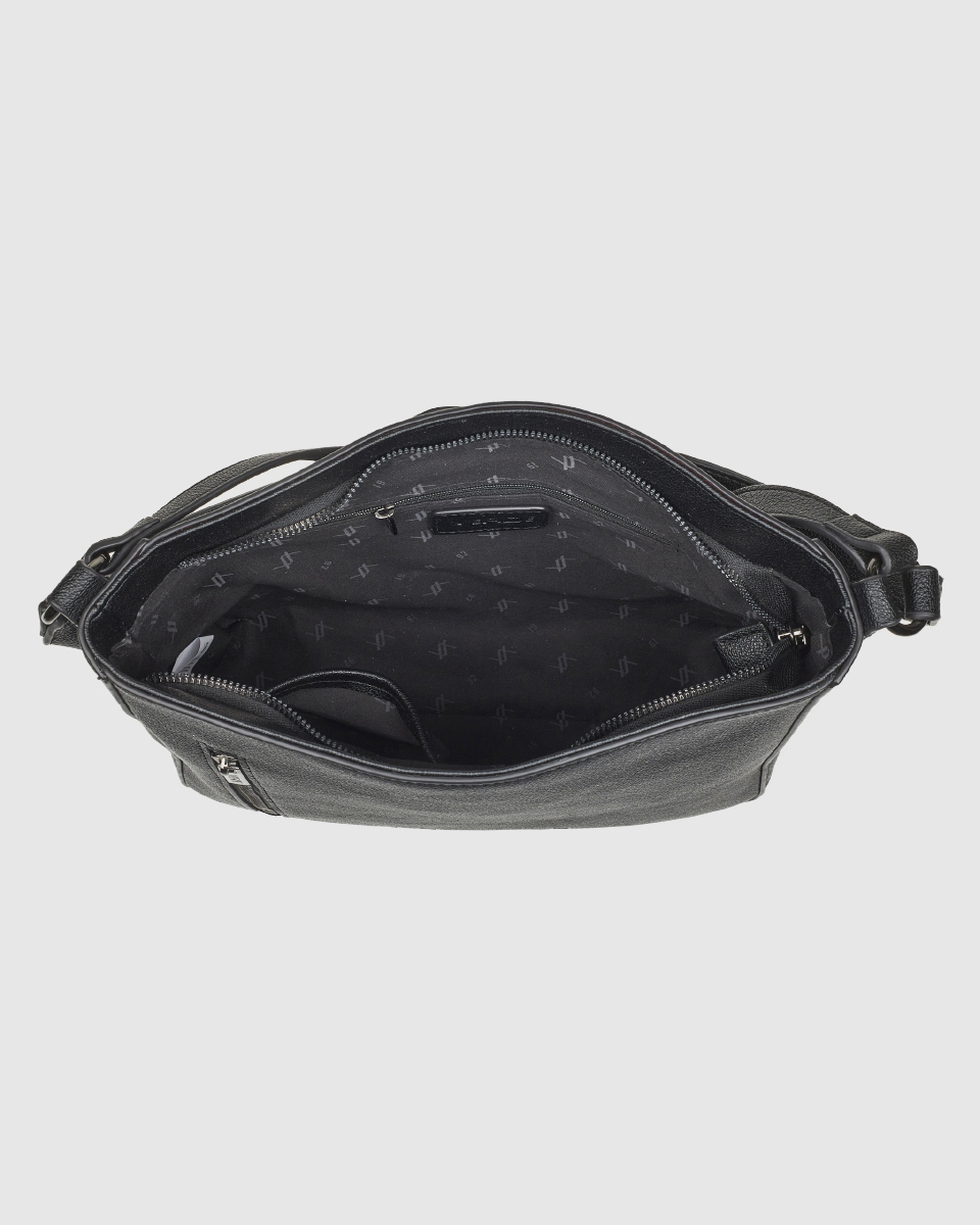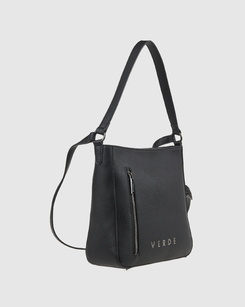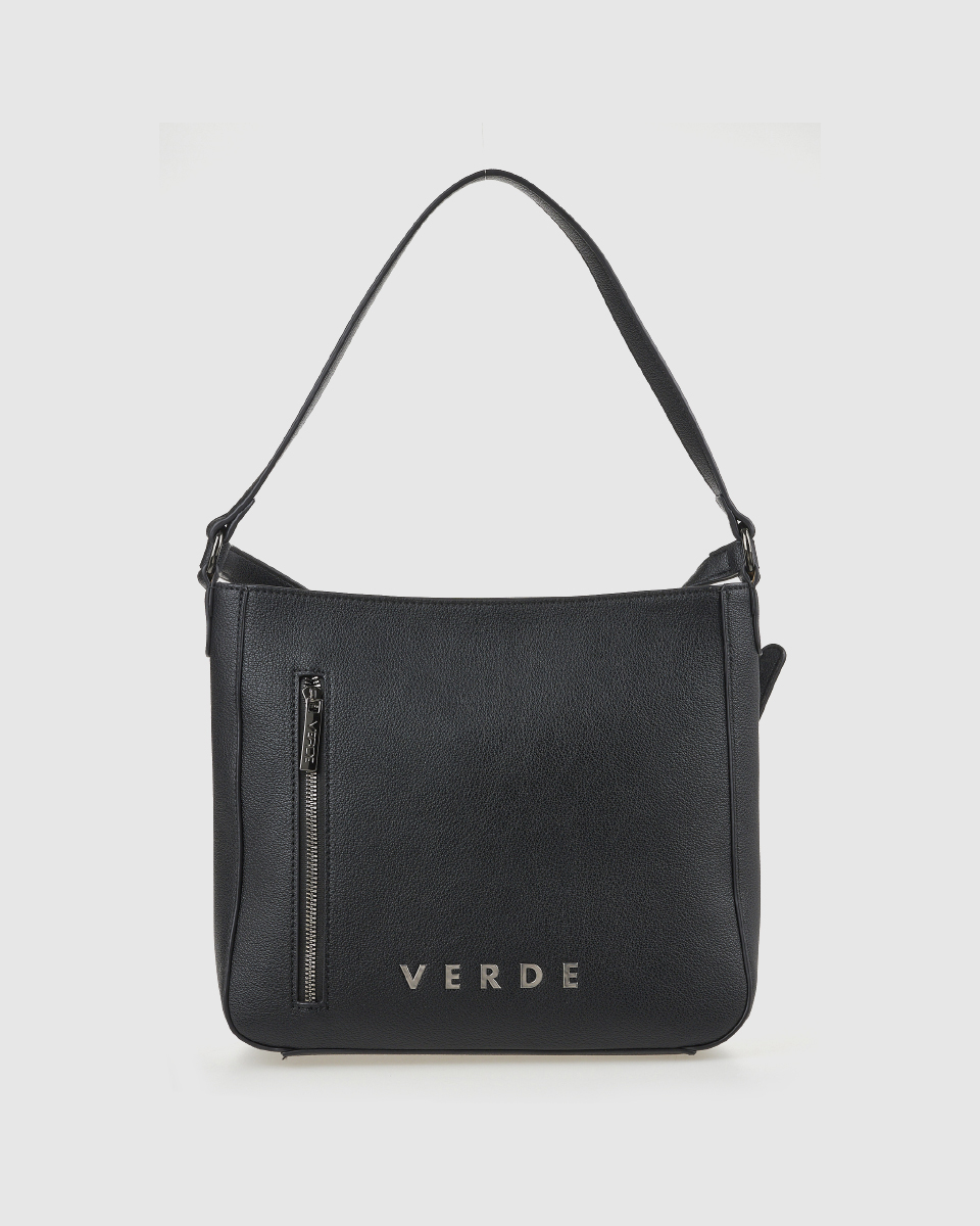Γυναικεία τσάντα ώμου VERDE σε μαύρο χρώμα, από συνθετικό δέρμα, με εξωτερική τσέπη και μοντέρνο σχεδιασμό. Ιδανική για καθημερινή χρήση.