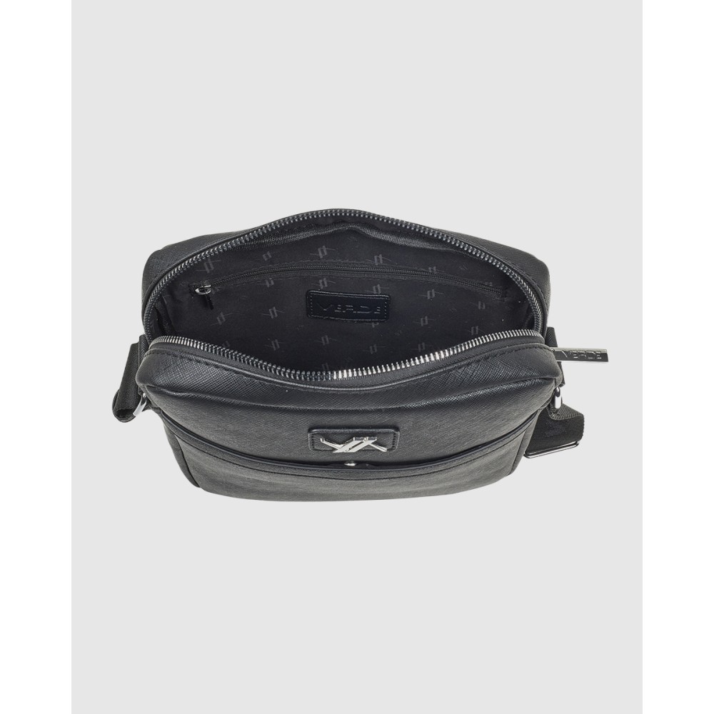Ανδρικό τσαντάκι χιαστί Verde σε μαύρο χρώμα, με κύρια θήκη φερμουάρ, εσωτερική τσέπη και ρυθμιζόμενο λουράκι ώμου. Ιδανικό για καθημερινή χρήση.