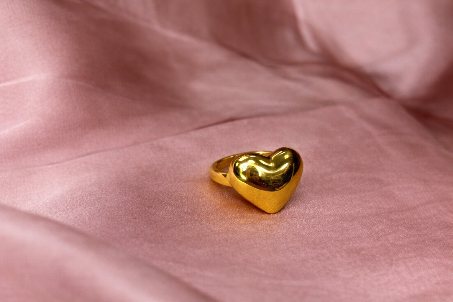 Αναδείξτε τη ρομαντική πλευρά του στυλ σας με αυτό το εντυπωσιακό χρυσό δαχτυλίδι καρδιά, ένα κόσμημα που συνδυάζει minimal αισθητική και διαχρονική κομψότητα.