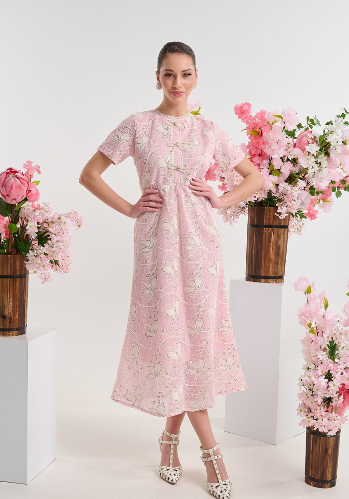 Κομψό midi φόρεμα με κεντημένες λεπτομέρειες από τη brigitte boutique. Ρομαντική αισθητική και refined γραμμή για elegant εμφανίσεις.