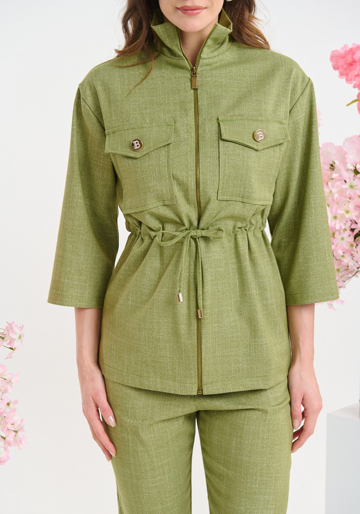 Σύγχρονο και κομψό σετ από τη brigitte boutique, σχεδιασμένο για γυναίκες που επιλέγουν refined minimal εμφανίσεις με μοντέρνο χαρακτήρα. Το σακάκι με φερμουάρ και ρυθμιζόμενο κορδόνι στη μέση αναδεικνύει τη σιλουέτα, προσφέροντας άνεση και θηλυκή εφαρμογή. Οι διακοσμητικές τσέπες και οι μεταλλικές λεπτομέρειες προσθέτουν μία elegant πινελιά που αναβαθμίζει το σύνολο.