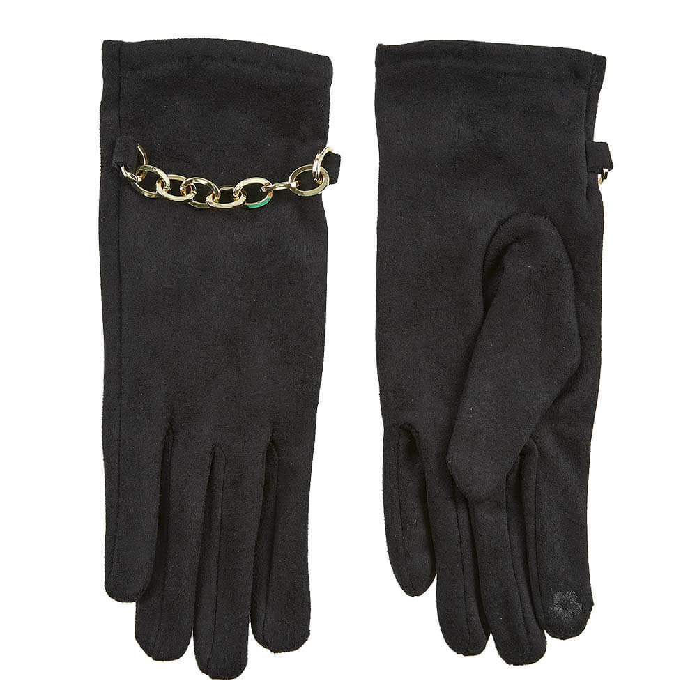 Η απαλή υφή τους εξασφαλίζει άνεση και ευχάριστη αίσθηση κατά τη χρήση, ενώ η άνετη εφαρμογή επιτρέπει ελευθερία κινήσεων. Η διακριτική αλλά εντυπωσιακή χρυσή αλυσίδα προσθέτει χαρακτήρα και μετατρέπει τα γάντια σε ένα statement αξεσουάρ που ολοκληρώνει κάθε χειμερινό outfit.