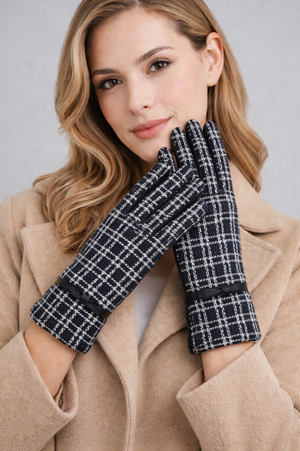 Κομψά γυναικεία γάντια VERDE με tweed σχέδιο και διακριτικό φιόγκο, ιδανικά για ζεστές και στυλάτες χειμερινές εμφανίσεις.