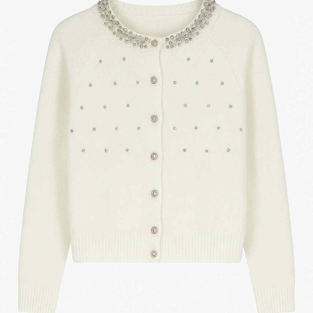 Αναδείξτε τη θηλυκότητα και την κομψότητά σας με αυτή τη ζακέτα με διακοσμητικά στρας, ιδανική για κάθε περίσταση.