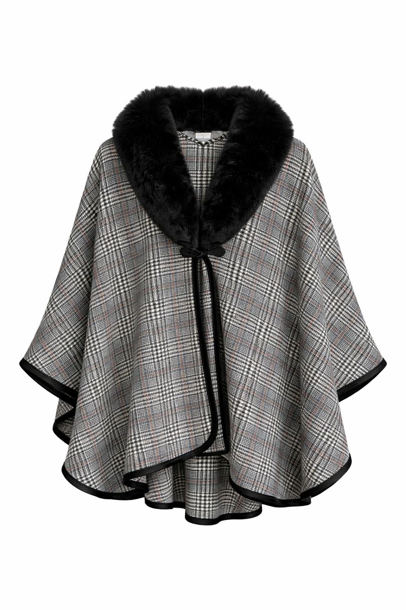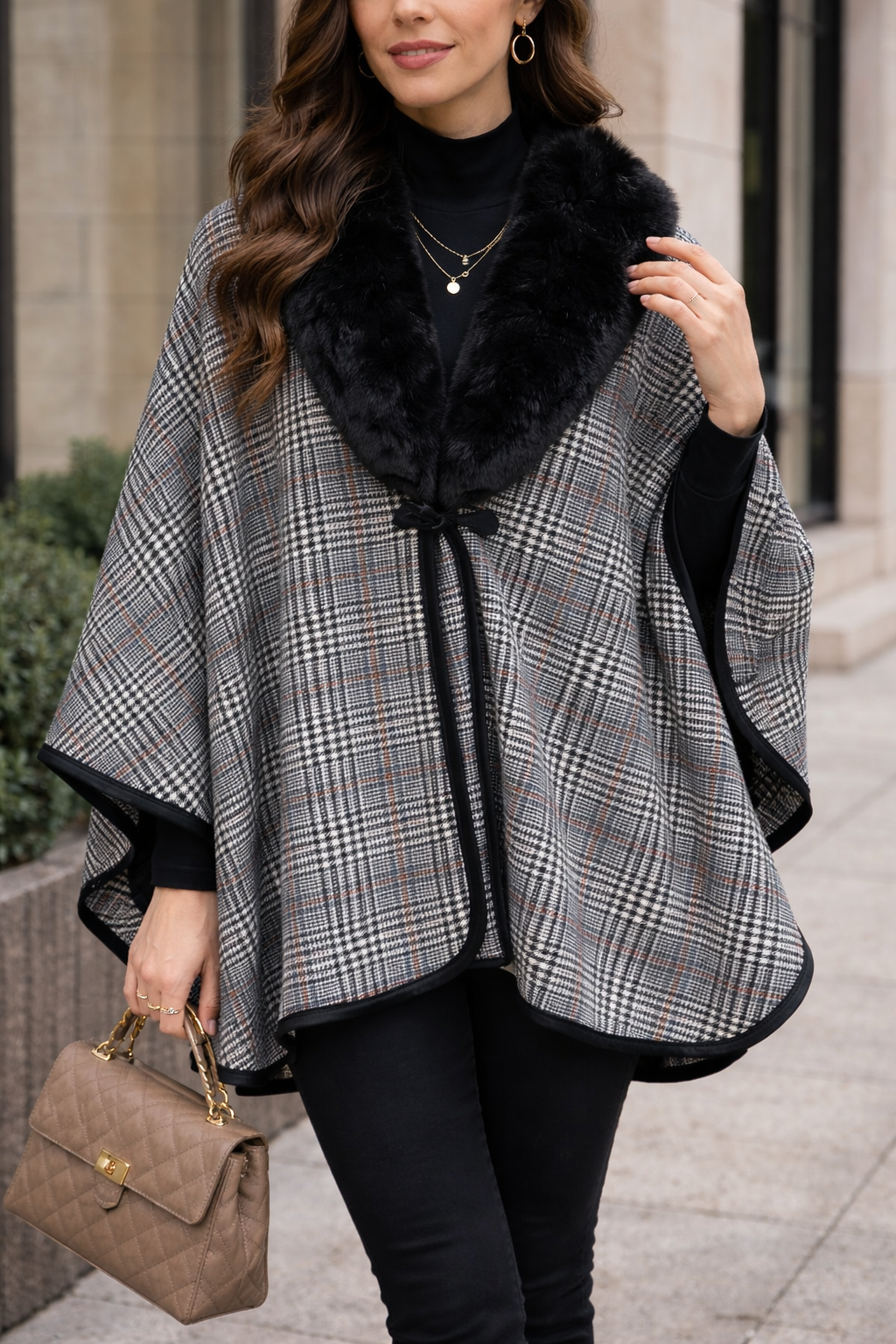 Γυναικεία καρό κάπα με γιακά από συνθετική γούνα. Ζεστή, μοντέρνα και κομψή για casual και chic outfits.