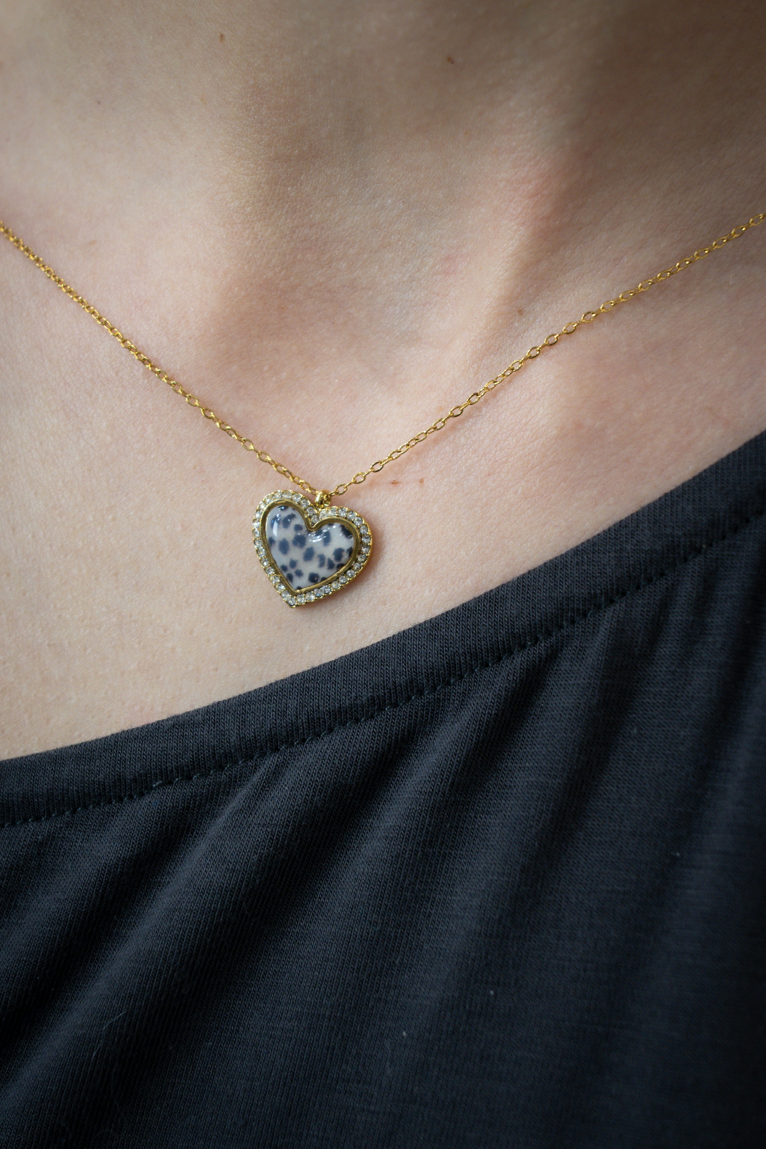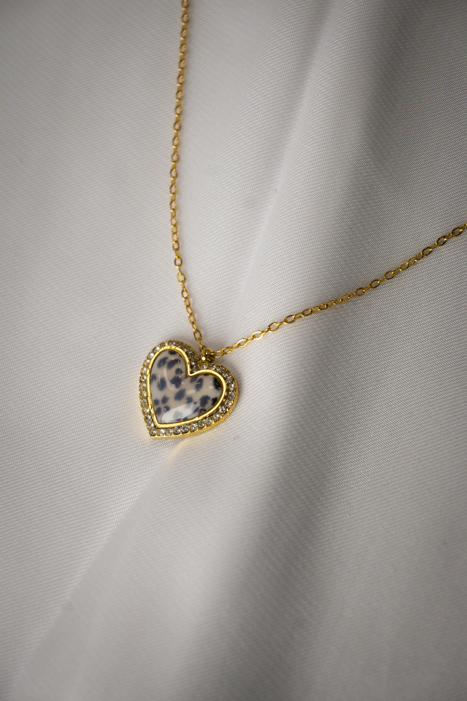 Κολιέ καρδιά από ατσάλι με animal print λεπτομέρεια και στρας. Μοντέρνο και ξεχωριστό