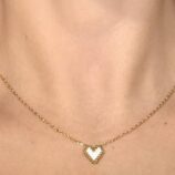 Κολιέ με καρδιά σε λευκό και χρυσό χρώμα, με λεπτή χρυσή αλυσίδα. Minimal και κομψό, ιδανικό για καθημερινές και βραδινές εμφανίσεις.
