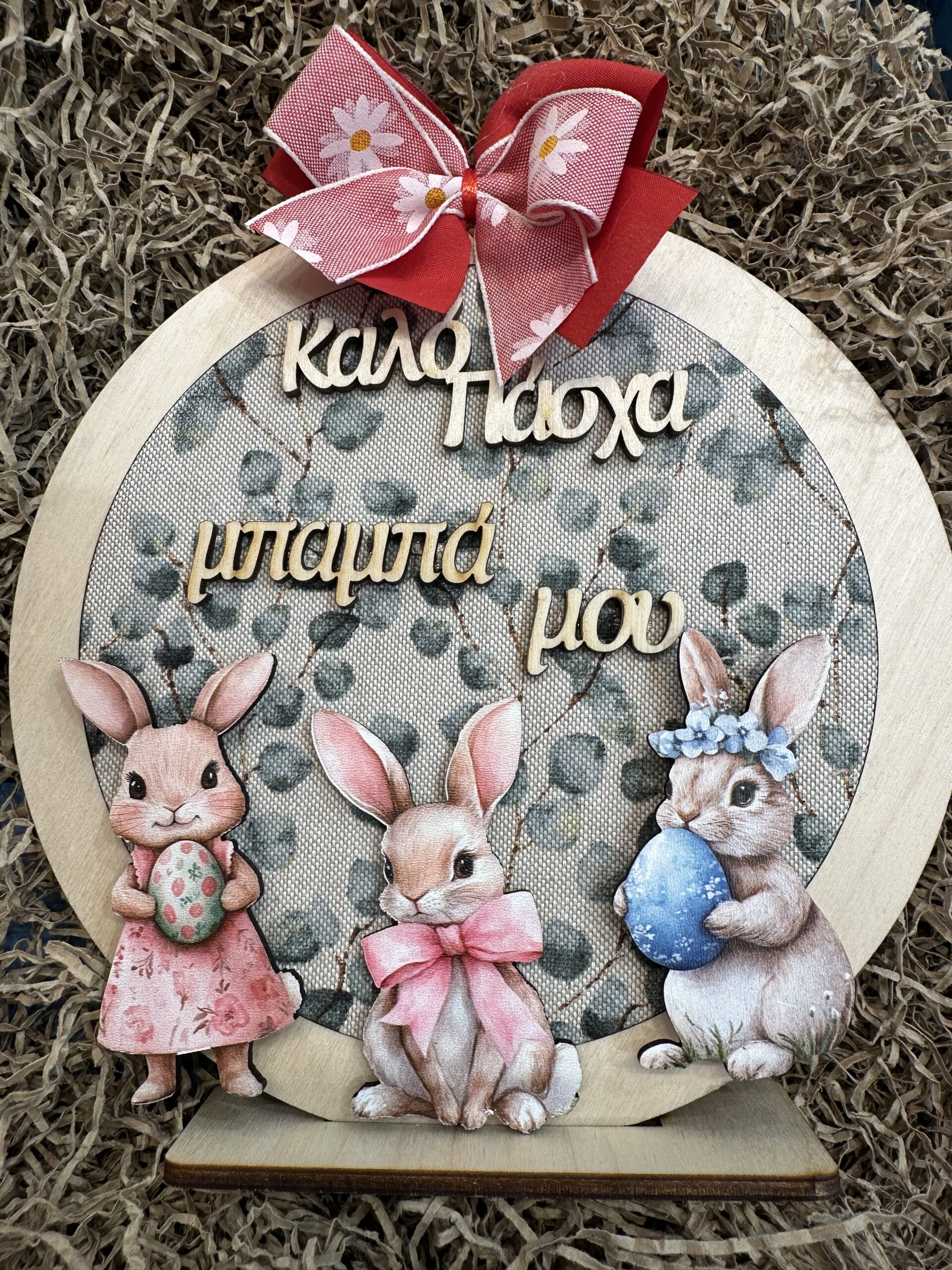 Πασχαλινό Ξύλινο Διακοσμητικό «Καλό Πάσχα Μπαμπά Μου» με Λαγουδάκια