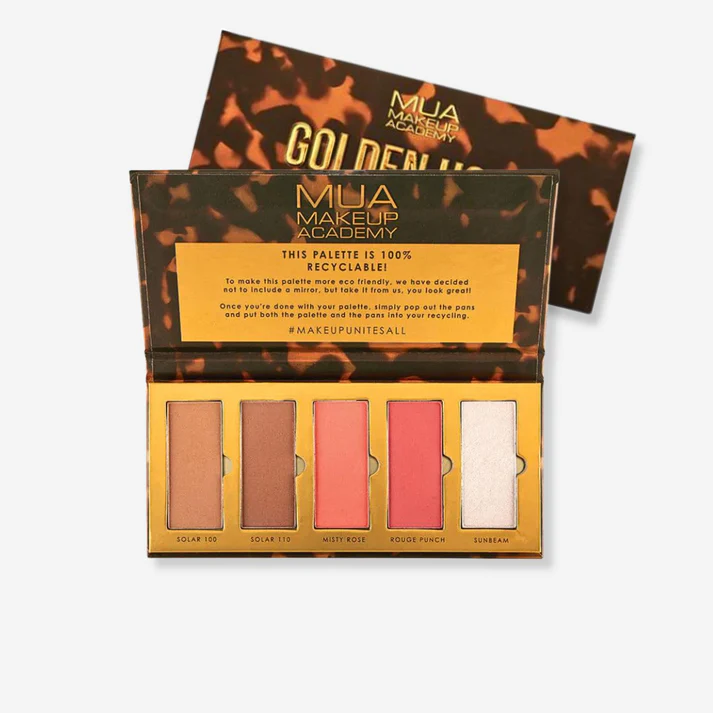 MUA GOLDEN HOUR FACE PALETTE ΠΑΛΕΤΑ ΠΡΟΣΩΠΟΥ BRONZER BLUSH & HIGHLIGHTER