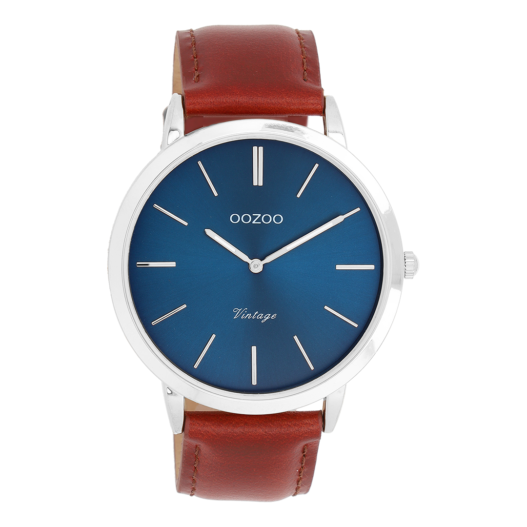 OOZOO C20387 VINTAGE ΑΝΔΡΙΚΟ ΡΟΛΟΙ ΜΕ ΜΠΛΕ ΚΑΝΤΡΑΝ & ΚΑΦΕ ΔΕΡΜΑΤΙΝΟ ΛΟΥΡΑΚΙ