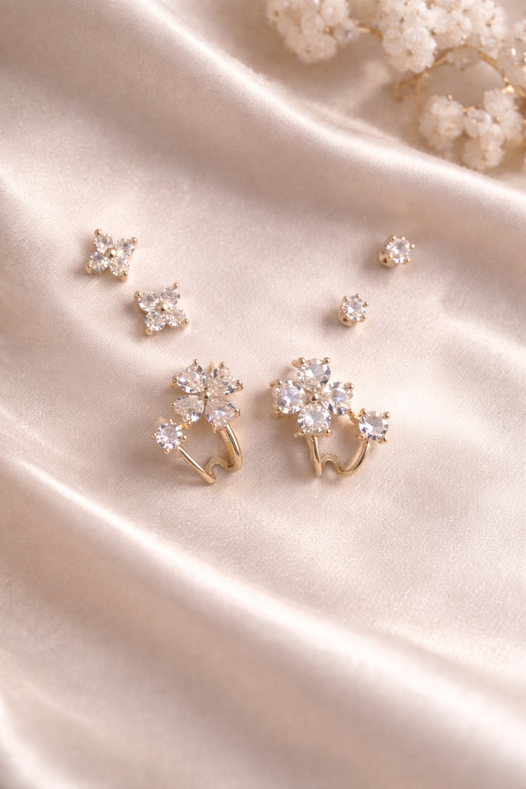 Το σετ περιλαμβάνει διαφορετικά μεγέθη και σχέδια – από διακριτικά μονόπετρα καρφωτά έως πιο εντυπωσιακά floral σχέδια – επιτρέποντάς σας να δημιουργήσετε μοναδικά ear combinations. Η χρυσή απόχρωση χαρίζει διαχρονική κομψότητα και ταιριάζει εύκολα με κάθε στυλ.