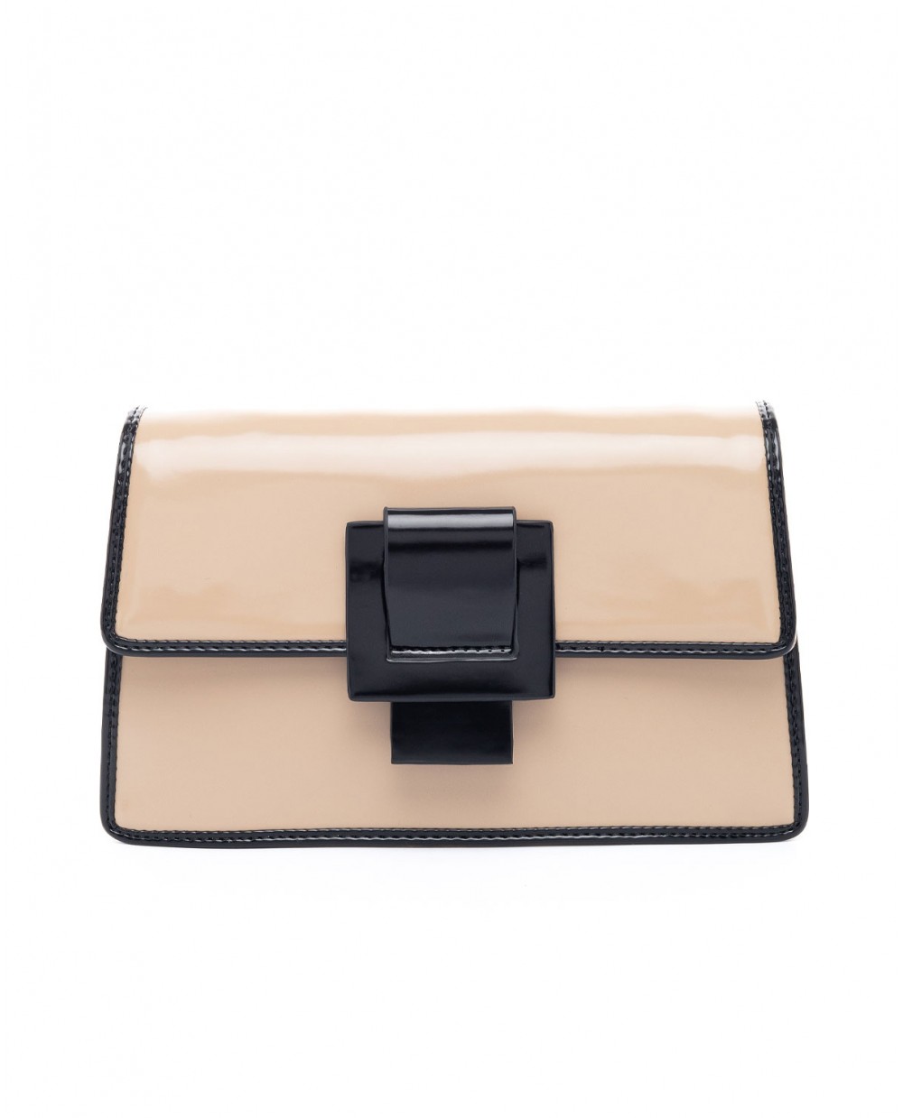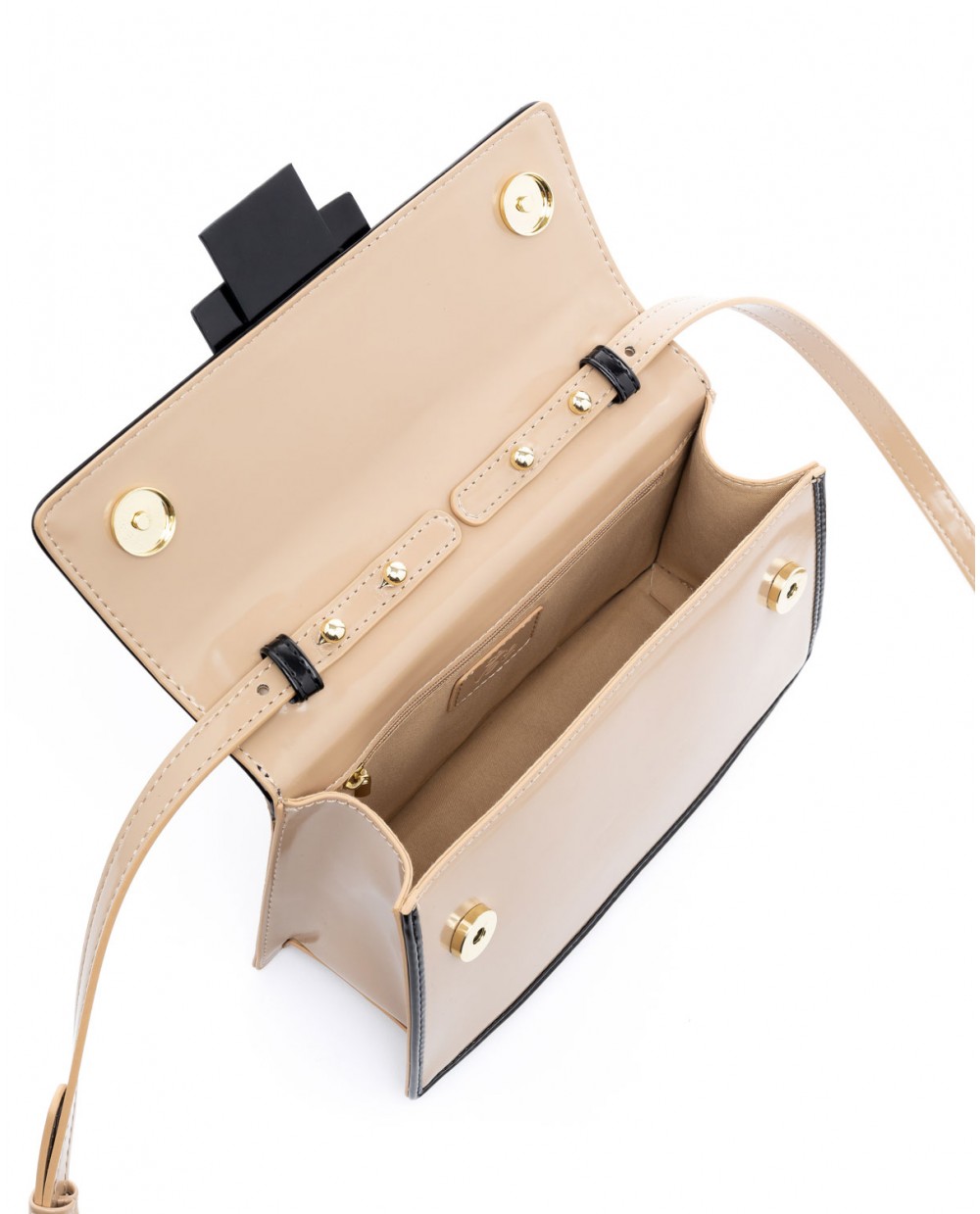 Τσάντα ώμου μπεζ λουστρίν σε συνδυασμό μαύρη λεπτομέρεια.