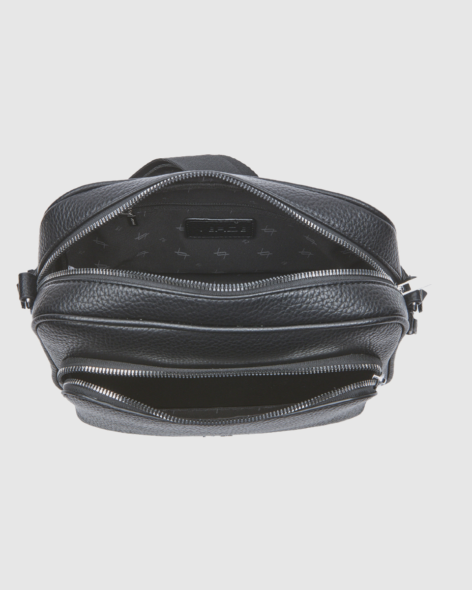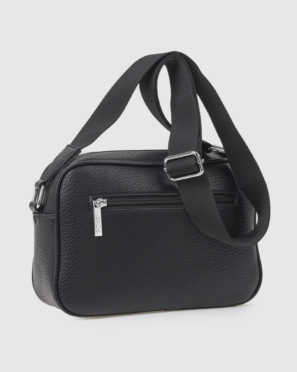 Μαύρη τσάντα χιαστί VERDE με διπλή θήκη, εξωτερικές τσέπες με φερμουάρ και ρυθμιζόμενο ιμάντα ώμου. Ιδανική για καθημερινή χρήση με πρακτικό και κομψό σχεδιασμό.