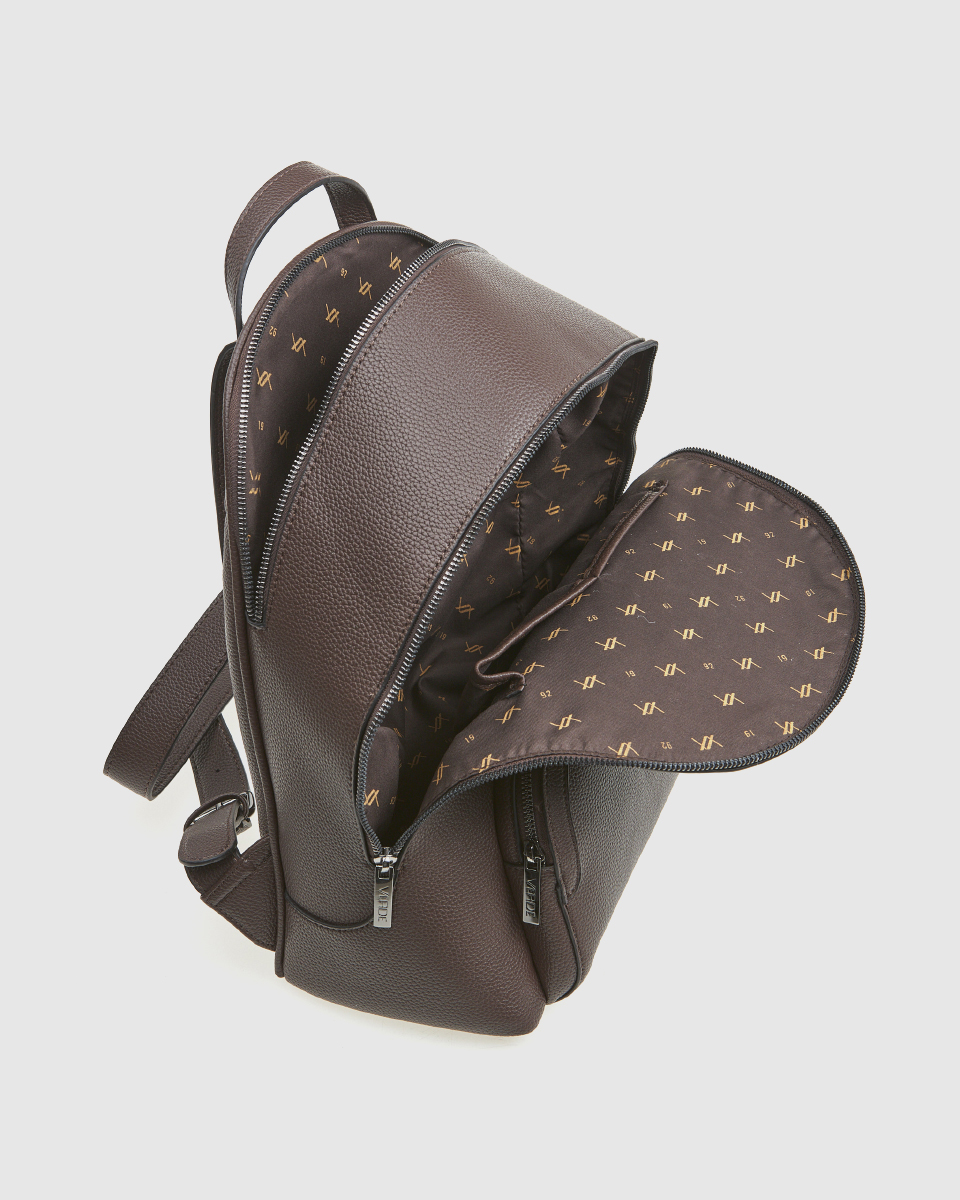 Κομψό γυναικείο σακίδιο πλάτης της εταιρείας VERDE σε καφέ απόχρωση με ανάγλυφη υφή, που συνδυάζει πρακτικότητα και διαχρονικό στυλ για κάθε στιγμή της ημέρας. Ο μοντέρνος αλλά λιτός σχεδιασμός του το καθιστά ιδανική επιλογή για το γραφείο, τις καθημερινές μετακινήσεις, τις βόλτες και τα ταξίδια μέσα στην πόλη.