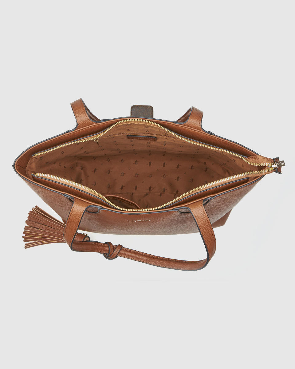 Γυναικεία τσάντα ώμου VERDE τύπου tote σε καφέ καμηλό χρώμα με φούντα και πολλαπλές εσωτερικές θήκες. Κομψή και ευρύχωρη για καθημερινή χρήση.