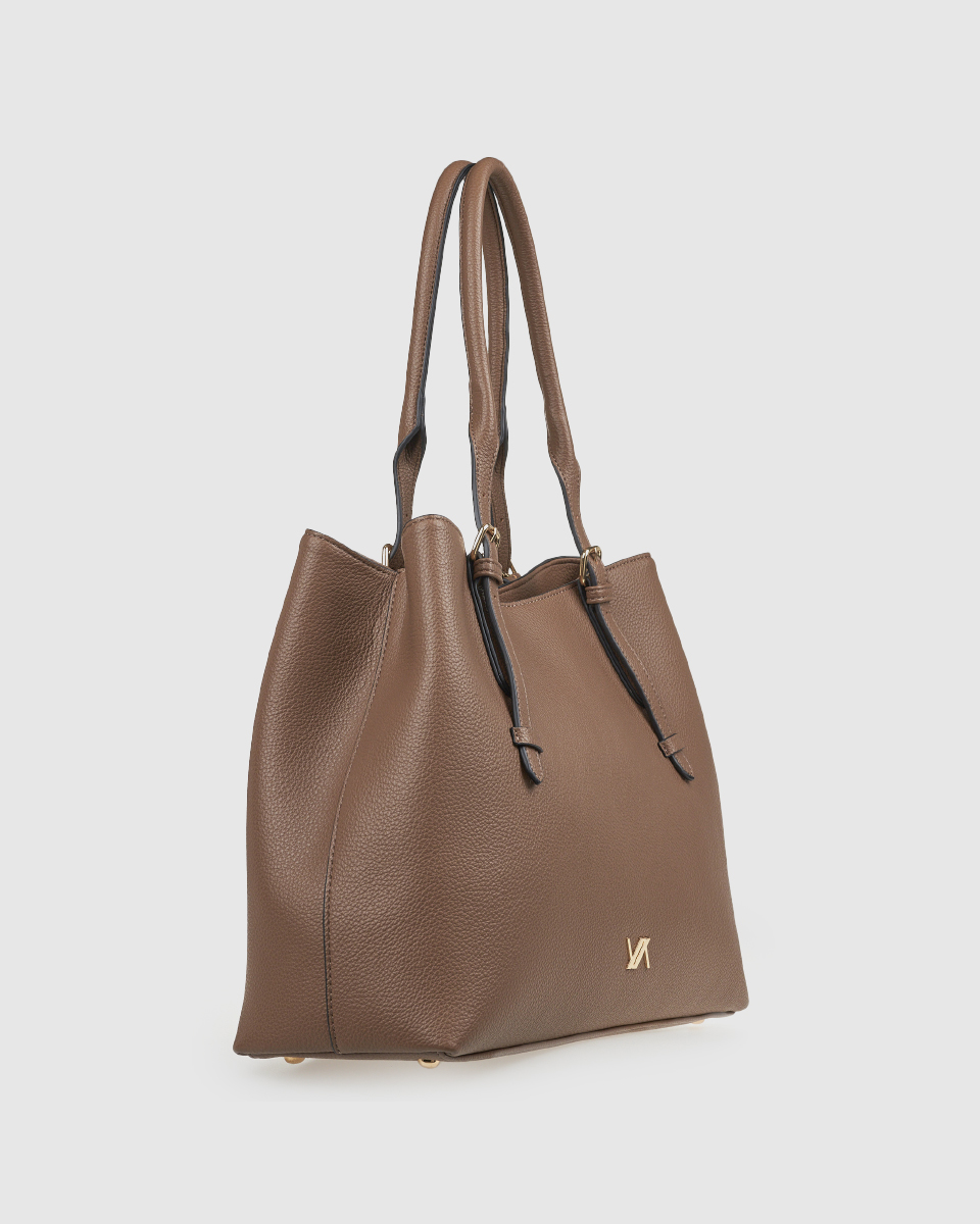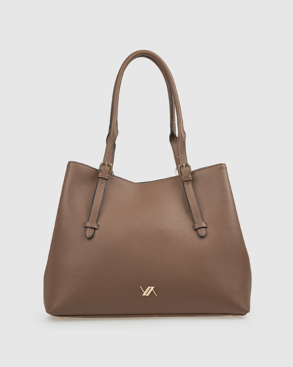 Κομψή γυναικεία τσάντα ώμου σε απόχρωση πούρου με ανάγλυφη υφή και διακριτικό μεταλλικό λογότυπο στο μπροστινό μέρος, που αποπνέει διαχρονική κομψότητα και πρακτικότητα. Ο λιτός αλλά εκλεπτυσμένος σχεδιασμός της την καθιστά ιδανική επιλογή για το γραφείο, τις καθημερινές μετακινήσεις και τις casual εμφανίσεις, προσφέροντας άνεση και στυλ σε κάθε περίσταση.