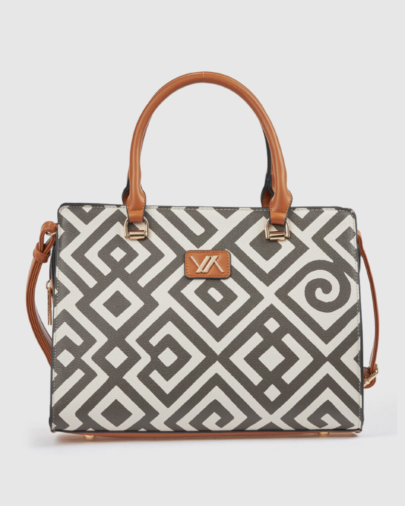 Αναβάθμισε τις καθημερινές σου εμφανίσεις με αυτή τη μοντέρνα γυναικεία τσάντα χειρός & χιαστί που συνδυάζει πρακτικότητα και κομψότητα. Το δυναμικό γεωμετρικό μοτίβο σε ουδέτερες αποχρώσεις χαρίζει ξεχωριστό χαρακτήρα, ενώ οι ταμπά λεπτομέρειες προσθέτουν ζεστασιά και διαχρονικό στυλ.