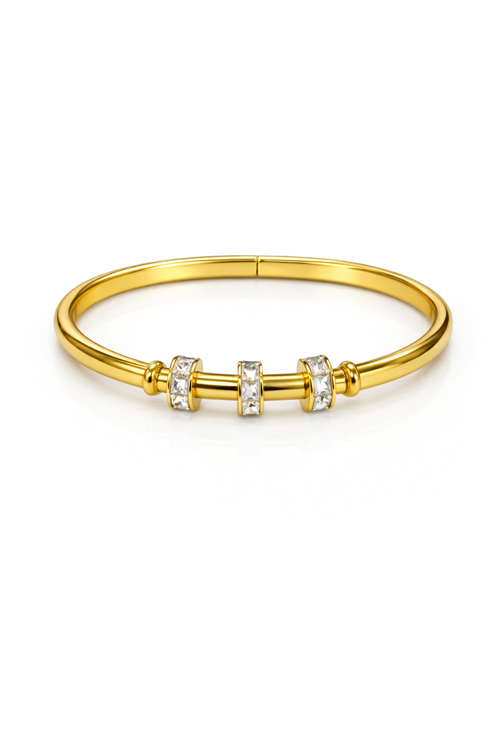Κομψό κλειστό βραχιόλι σε χρυσό τόνο με διακριτικές λεπτομέρειες από στρας, ιδανικό για καθημερινή λάμψη και elegant εμφανίσεις.